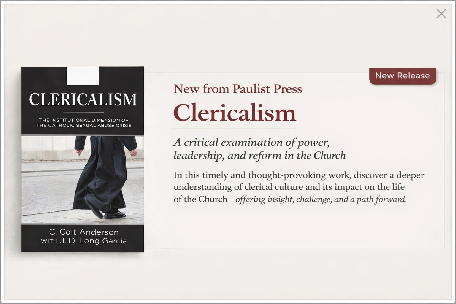 "We live in an intensely individualistic and deeply divided society. We frequently hear phrases like: 'I'm spiritual but not religious' and 'I've done my own research on this! I don't trust the official story!' How does one articulate a Christian spirituality in this context? John Markey and Michael Ceragioli do precisely that, offering a perspective that challenges as it unites and converts as it heals. A much-needed book."